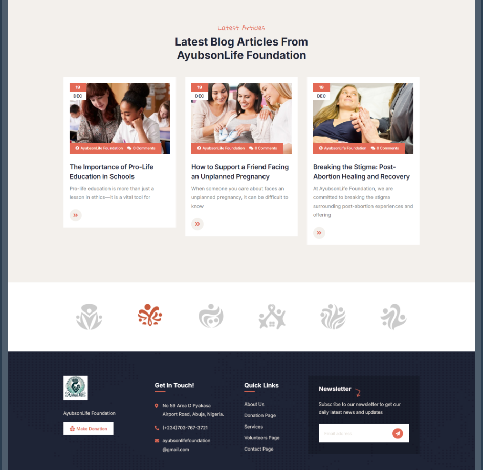 Educational Resources: The website included an extensive library of articles, videos, and downloadable resources on pro-life topics, crisis pregnancy support, and parenting. A blog was incorporated to provide regular updates on relevant issues, news, and foundation events.