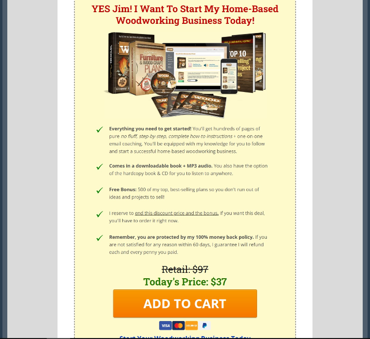 Personal anecdotes from successful woodworking entrepreneurs were incorporated to inspire trust.
